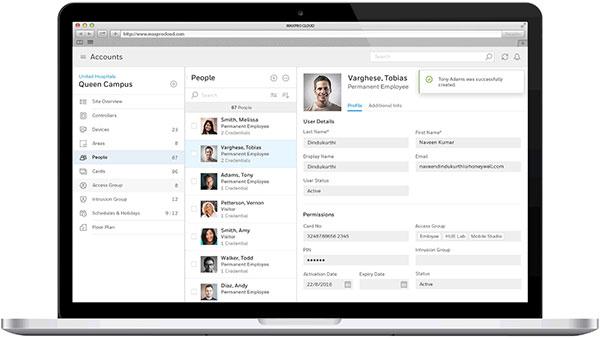 Eigenaren kunnen via de Chrome webbrowser rekenen op het gebruiksgemak van het MAXPRO Cloud online portal of met de app voor op de smartphone. Met de app kunnen push notificaties van alarmen of urgente gebeurtenissen worden ontvangen, bepaalde functies worden beheerd en centrales overal ter wereld worden bediend en gemonitord. Daarnaast kunnen gebruikers op locatie gemakkelijk van de centrale gebruikmaken met een touchscreen bediendeel.